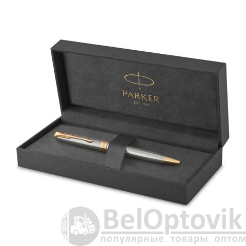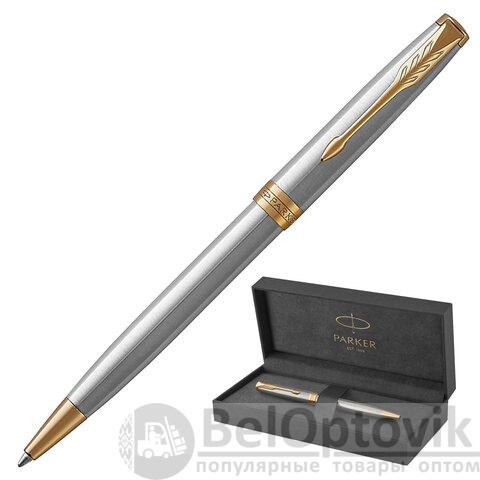 Ручка шариковая PARKER "Sonnet Core Stainless Steel GT", корпус серебро, позолота, черная, 1931507
