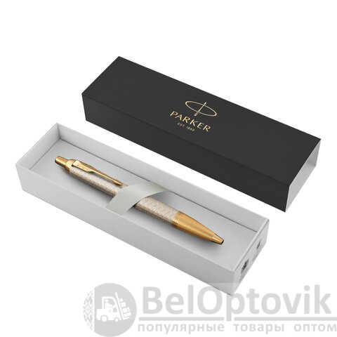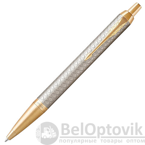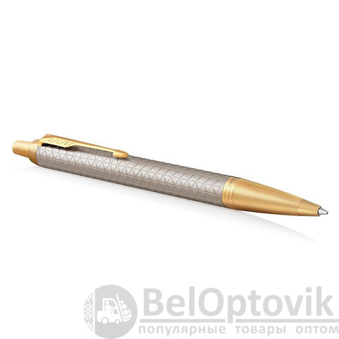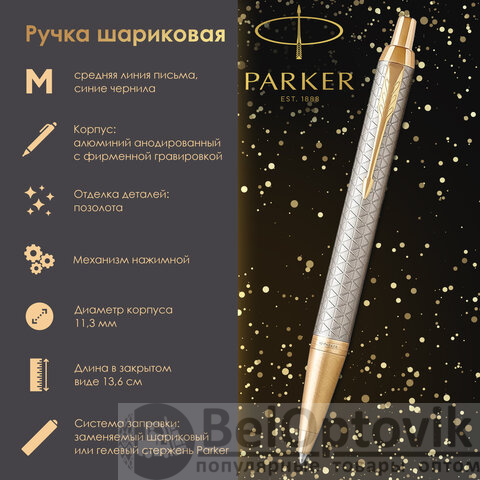 Ручка шариковая PARKER "IM Premium Warm Silver GT", корпус матовое серебро, позолота, синяя, 1931687