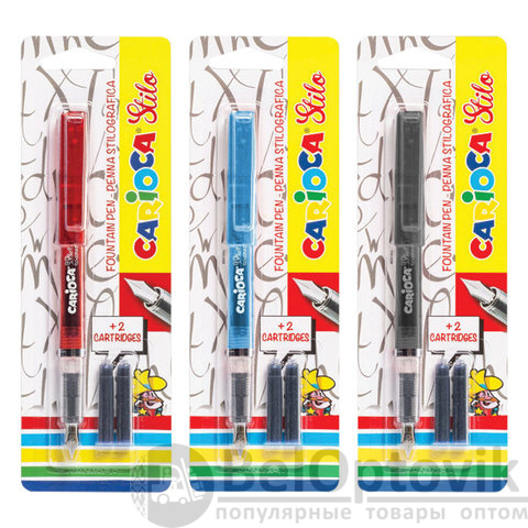 Ручка перьевая CARIOCA "Stilo", иридиевое перо, 2 сменных картриджа, корпус ассорти, Италия, 42303