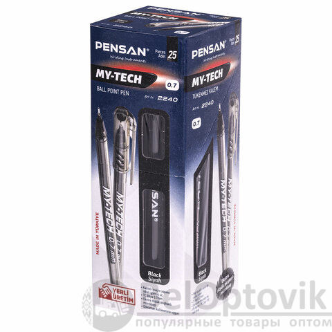 Ручка шариковая масляная PENSAN "My-Tech", ЧЕРНАЯ, игольчатый узел 0,7 мм, линия письма 0,35 мм, 2240/25