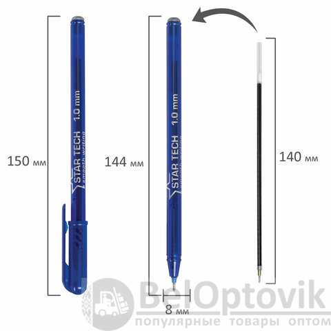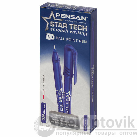 Ручка шариковая масляная PENSAN Star Tech, СИНЯЯ, игольчатый узел 1 мм, линия 0,8 мм, 2260/12