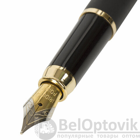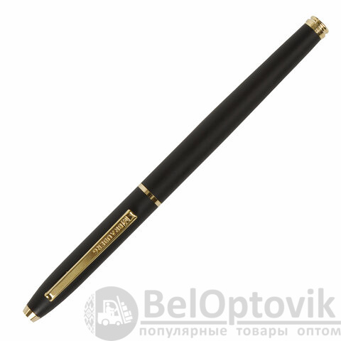 Ручка подарочная перьевая BRAUBERG "Brioso", СИНЯЯ, корпус черный с золотистыми деталями, 143467