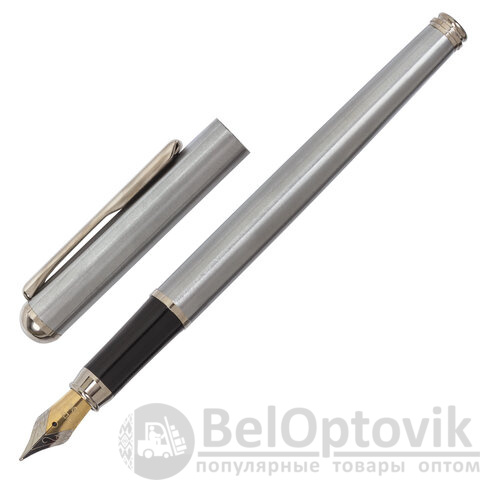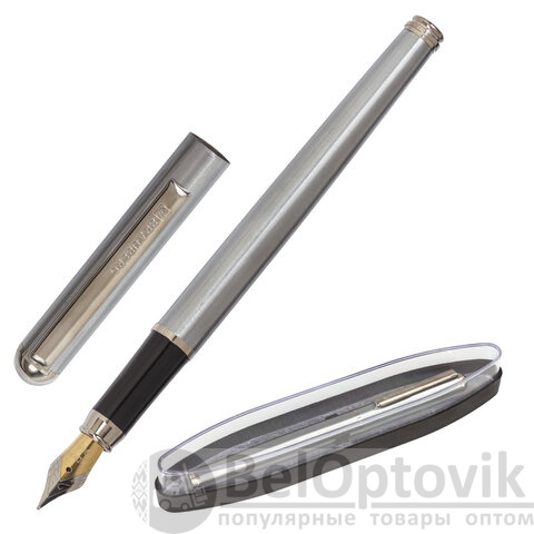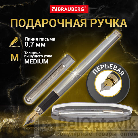 Ручка подарочная перьевая BRAUBERG "Larghetto", СИНЯЯ, корпус серебристый с хромированными деталями, 143475