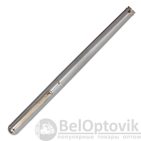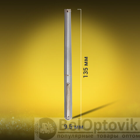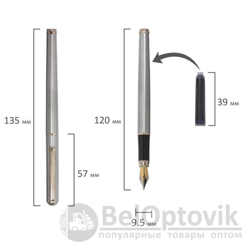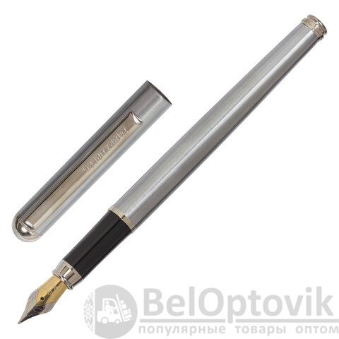 Стильная модель перьевой ручки с корпусом из металла серебристого цвета и хромированными деталями. Синий цвет чернил, иридиевое перо украшено гравировкой. Диаметр пишущего узла 0,5 мм. Тип пера M (Medium) – средняя ширина линии. Размер картриджа – 39 мм.