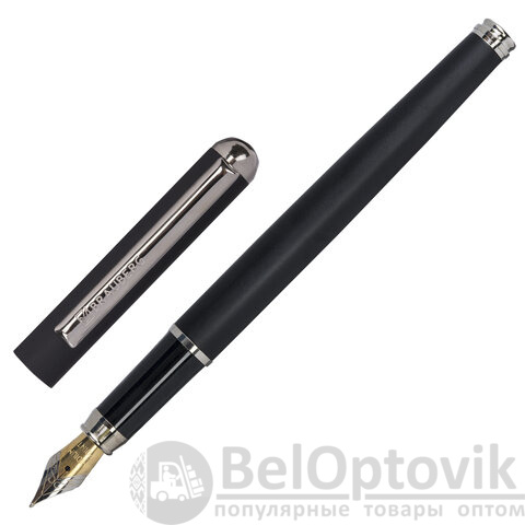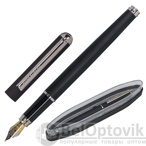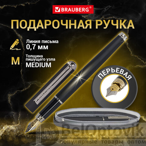 Ручка подарочная перьевая BRAUBERG "Larghetto", СИНЯЯ, корпус черный с хромированными деталями, 143477