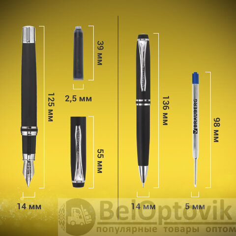 Набор ручек бизнес-класса BRAUBERG "Duetto" – это стильная перьевая и удобная шариковая ручки. Набор ручек не только порадует своего владельца, но и станет отличным подарком. Картридж с чернилами находится внутри корпуса перьевой ручки.