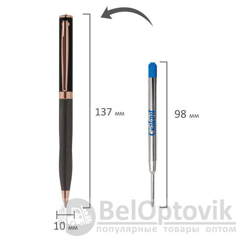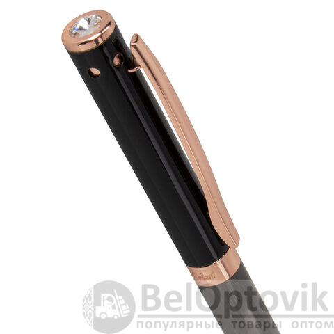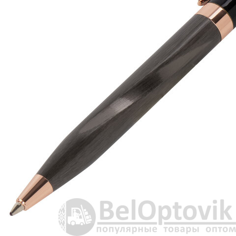Утонченная модель ручки с корпусом из латуни цвета оружейный металл с деталями, выполненными в цвете розовое золото. Синий цвет чернил; длина стержня составляет 98 мм, а диаметр пишущего узла - 0,7 мм. Поставляется в индивидуальном подарочном футляре. Подходит для гравировки.