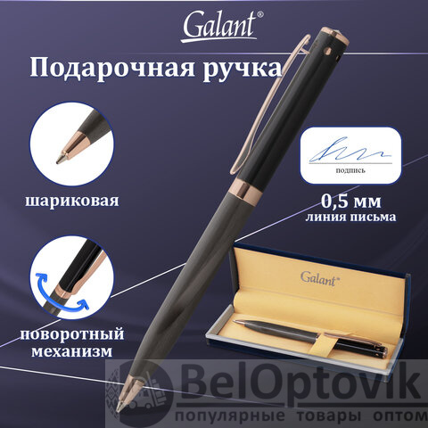 Ручка подарочная шариковая GALANT "FACTURA", корпус черный/оружейный металл, детали розовое золото, узел 0,7 мм, синяя, 143513 5217