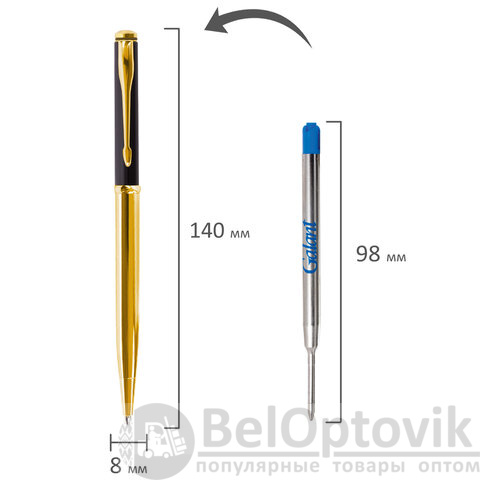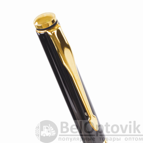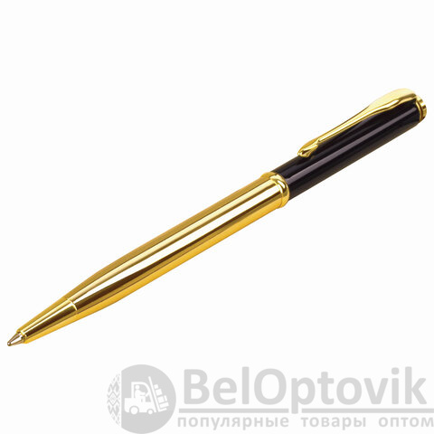 Утонченная модель ручки с корпусом из латуни черного и золотистого цветов с золотистыми деталями. Синий цвет чернил; длина стержня составляет 98 мм, а диаметр пишущего узла - 0,7 мм. Поставляется в индивидуальном подарочном футляре. Подходит для гравировки.