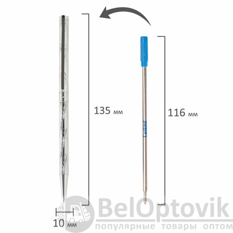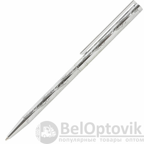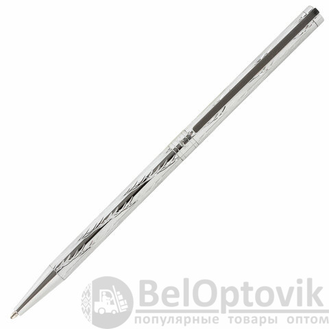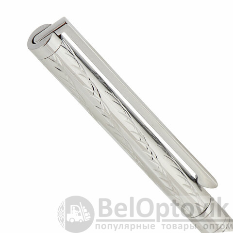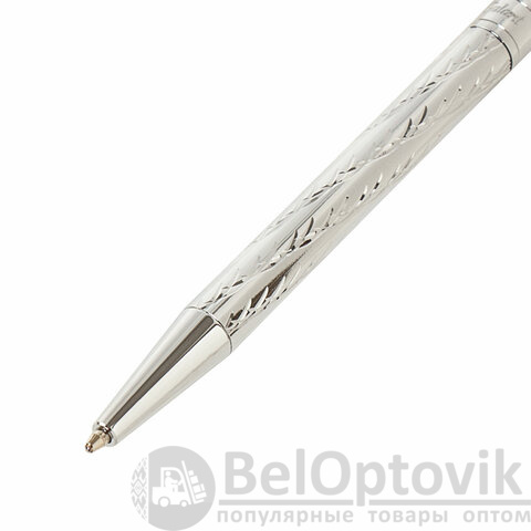 Роскошная модель ручки с корпусом из латуни серебристого цвета и декоративным узором. Синий цвет чернил; длина стержня составляет 116 мм, а диаметр пишущего узла - 0,7 мм. Поставляется в индивидуальном подарочном футляре. Подходит для гравировки.