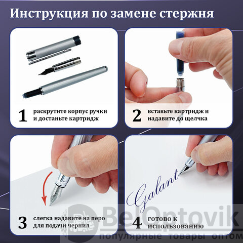 Картридж с чернилами находится внутри корпуса. Роскошная перьевая ручка GALANT "SPIGEL" станет отличным подарком к любому празднику или событию, подчеркнет статус и изысканность вкуса владельца. Картридж с чернилами находится внутри корпуса!