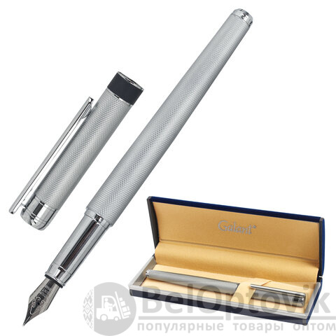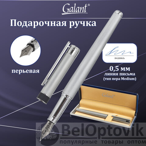 Ручка подарочная перьевая GALANT "SPIGEL", корпус серебристый, детали хромированные, узел 0,8 мм, 143530