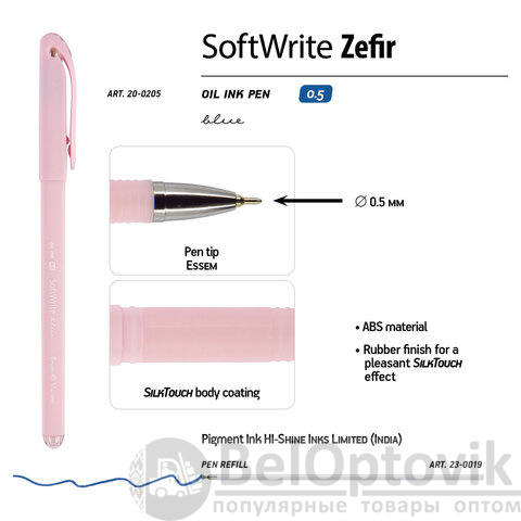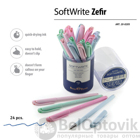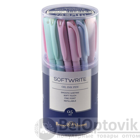 Ручка шариковая масляная BRUNO VISCONTI SoftWrite, СИНЯЯ, Zefir, корпус ассорти, узел 0,5 мм, линия письма 0,4 мм 20-0205