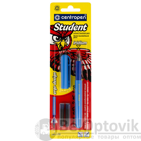 Ручка перьевая CENTROPEN "Student", корпус ассорти, иридиевое перо, 2 сменных картриджа, блистер, 2156, 1 2156 0101