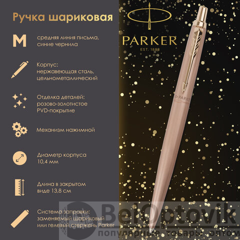 Ручка шариковая PARKER "Jotter XL Monochrome Pink Gold PGT", корпус "розовое золото", сталь, синяя, 2122755