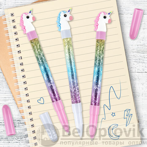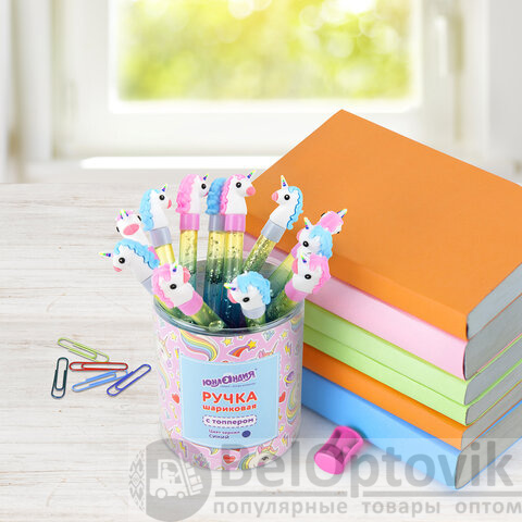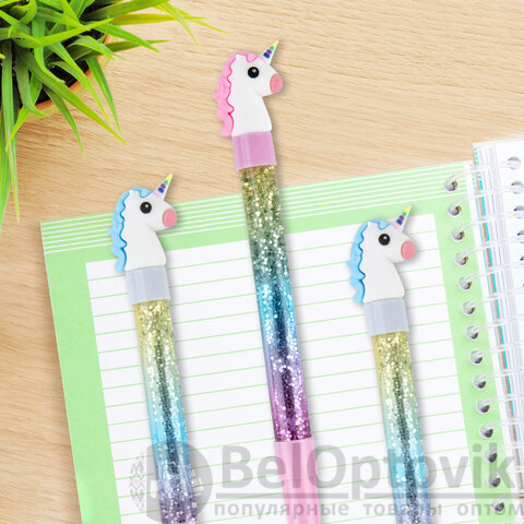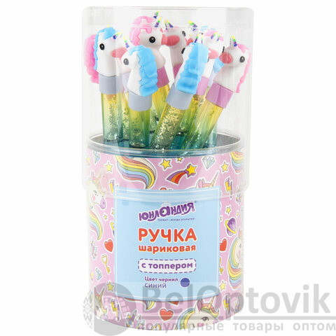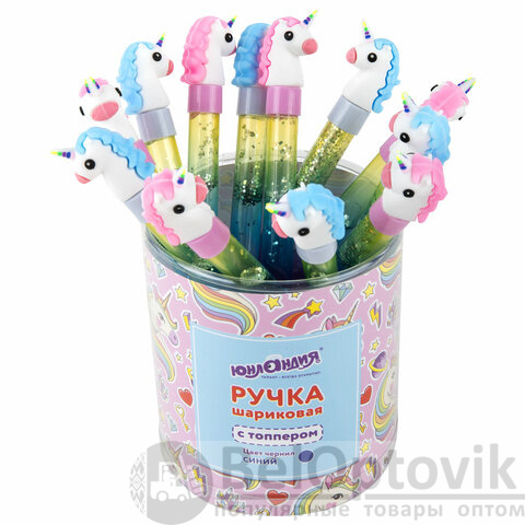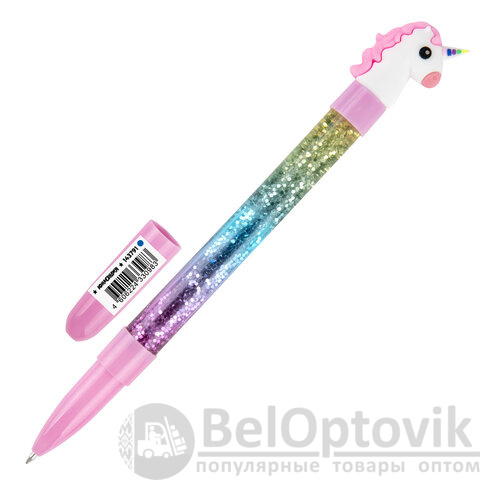 Шариковая ручка ЮНЛАНДИЯ "Единорог" с милой игрушкой на корпусе.