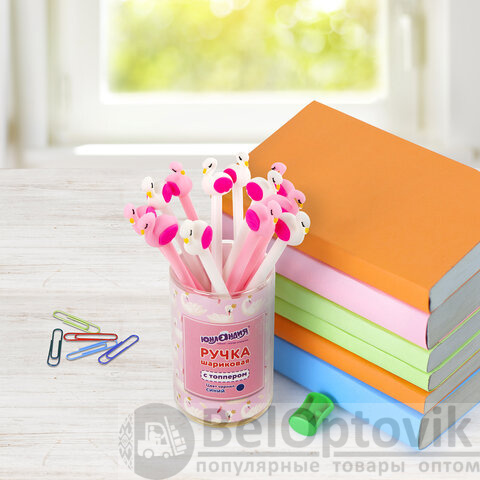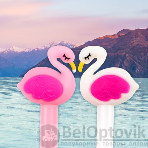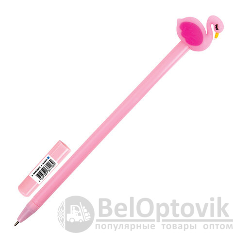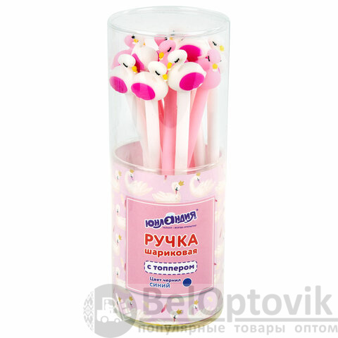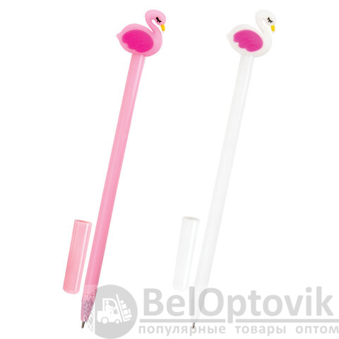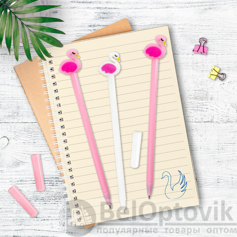 Шариковая ручка масляная ЮНЛАНДИЯ "Лебедь" с милой игрушкой на корпусе.
