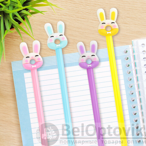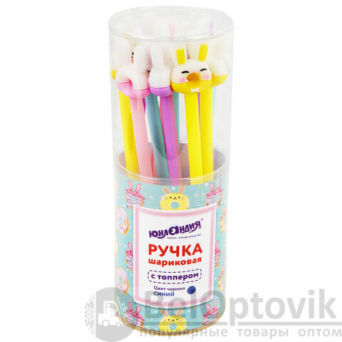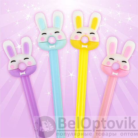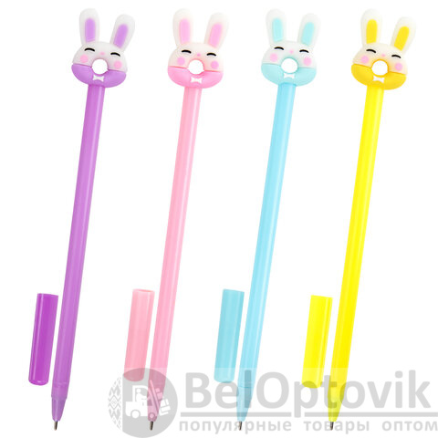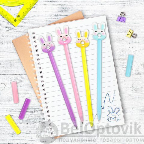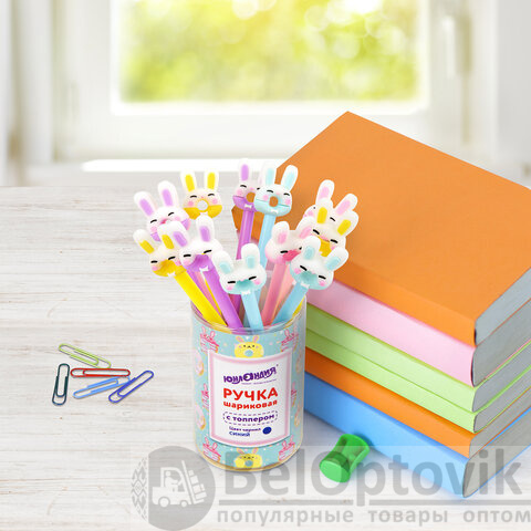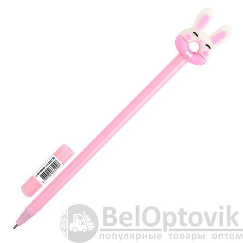 Шариковая ручка масляная ЮНЛАНДИЯ "Зайка-пончик" с милой игрушкой на корпусе.