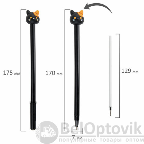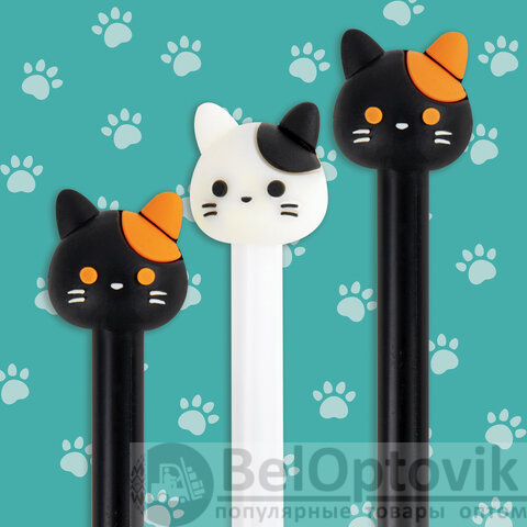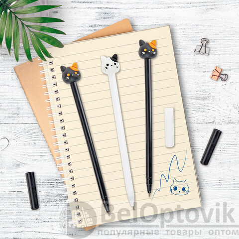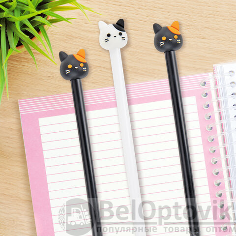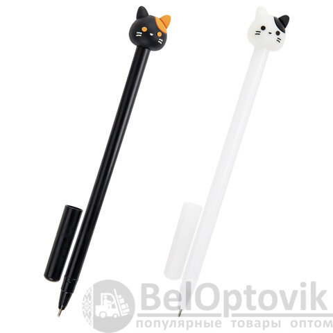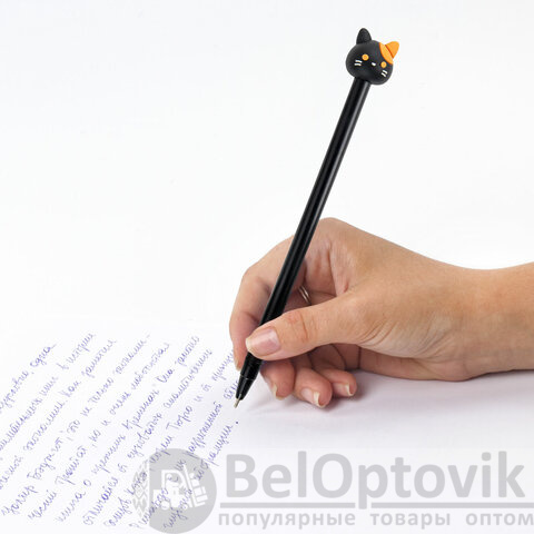 Шариковая ручка масляная ЮНЛАНДИЯ "Кошка" с милой игрушкой на корпусе.