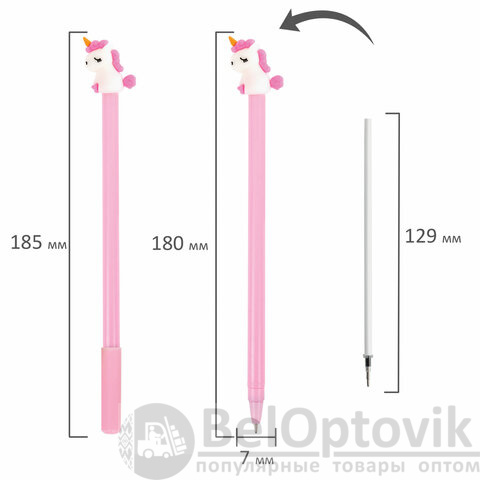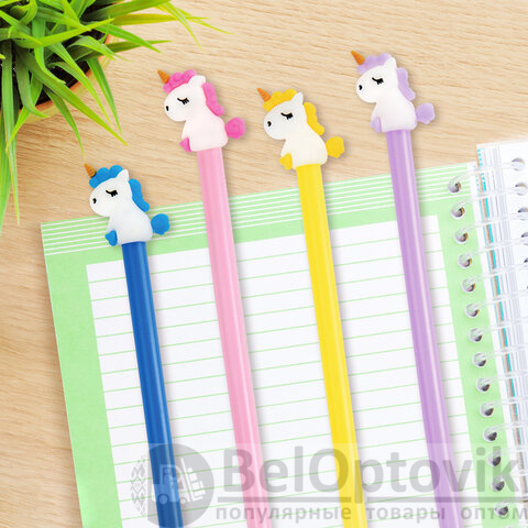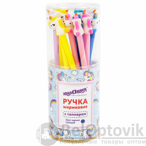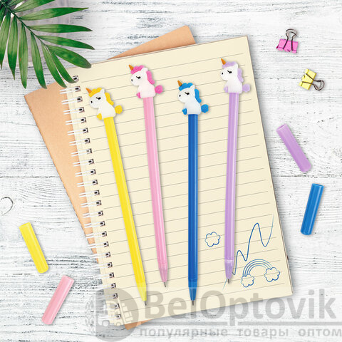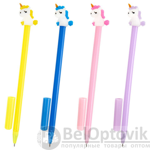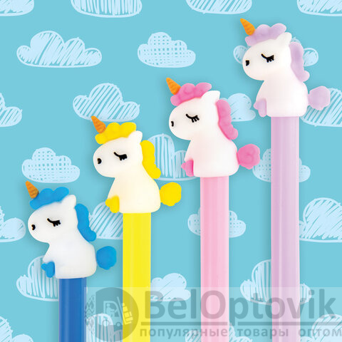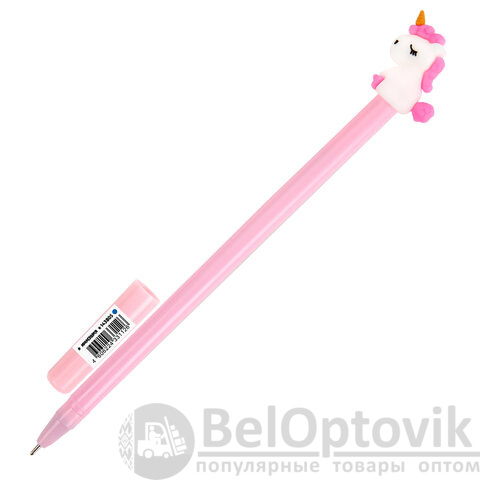 Шариковая ручка масляная ЮНЛАНДИЯ "Единорог" с милой игрушкой на корпусе.