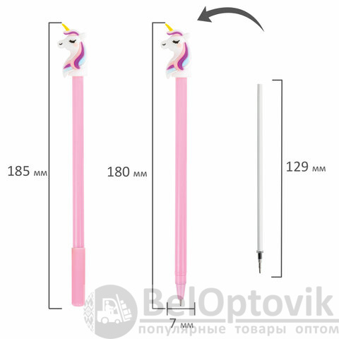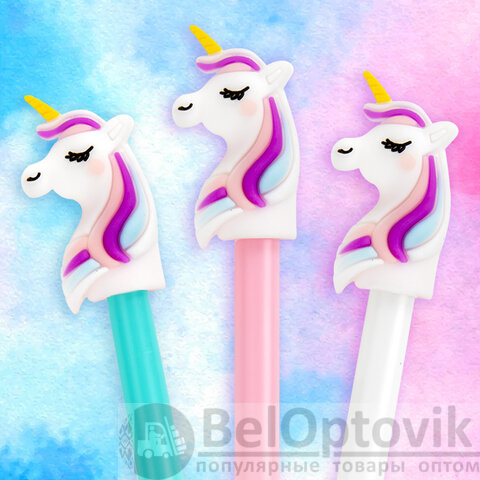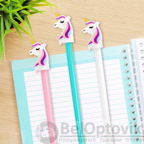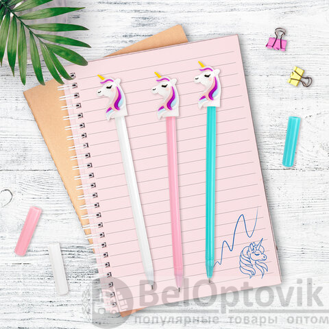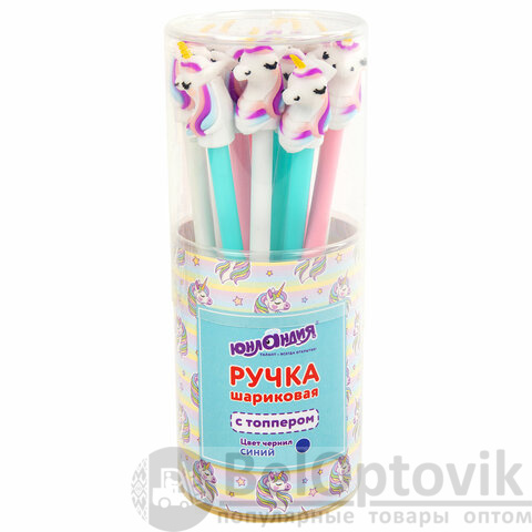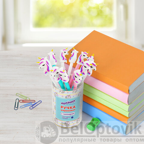 Шариковая ручка масляная ЮНЛАНДИЯ "Единорожка" с милой игрушкой на корпусе.