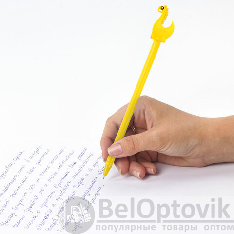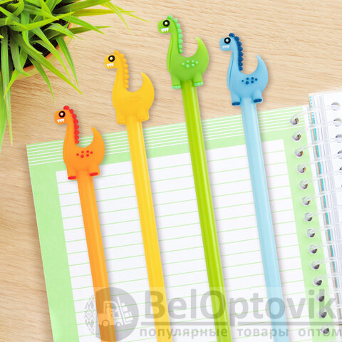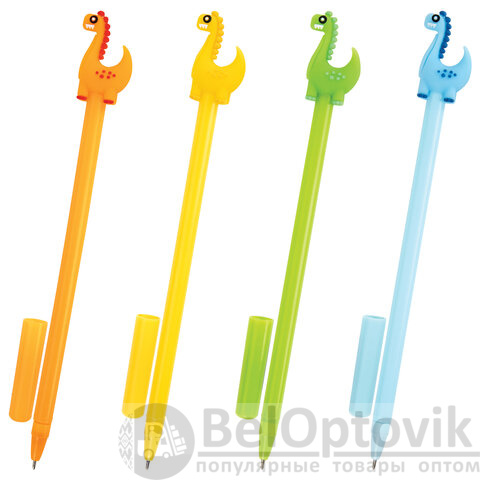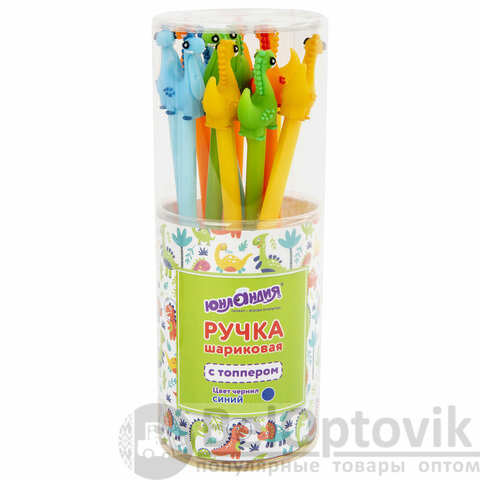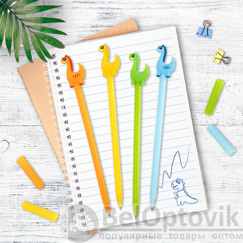 Шариковая ручка масляная ЮНЛАНДИЯ "Динозаврик" с милой игрушкой на корпусе.