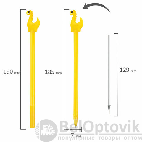 Шариковая ручка серии FUNNY YUMMY с ярким корпусом и оригинальным дизайном топперов в виде динозаврика. Благодаря привлекательному дизайну ее не захочется выпускать из рук, а чернила на масляной основе обеспечат мягкое плавное письмо. Диаметр игольчатого пишущего узла, равный 0,7 мм, создает линию письма, равную 0,35 мм. Длина сменного стержня составляет 129 мм. Цвет чернил - синий.