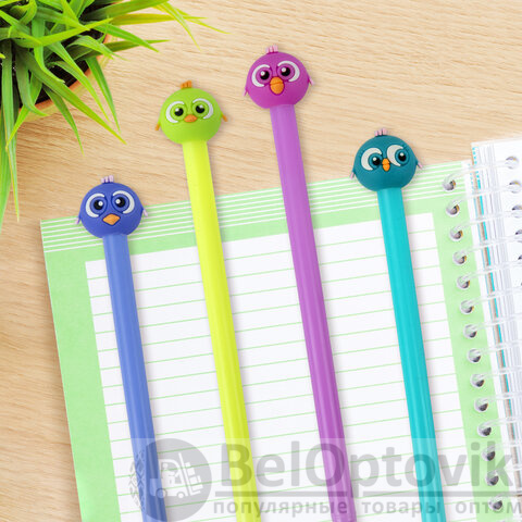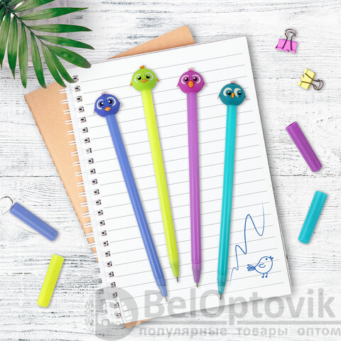 Шариковая ручка масляная ЮНЛАНДИЯ "Птенец" с милой игрушкой на корпусе.