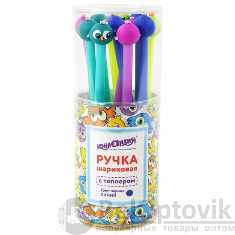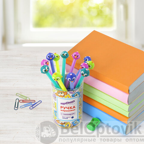 Ручка с топпером шариковая ЮНЛАНДИЯ "Птенец", корпус ассорти, СИНЯЯ, пишущий узел 0,7 мм, 143811