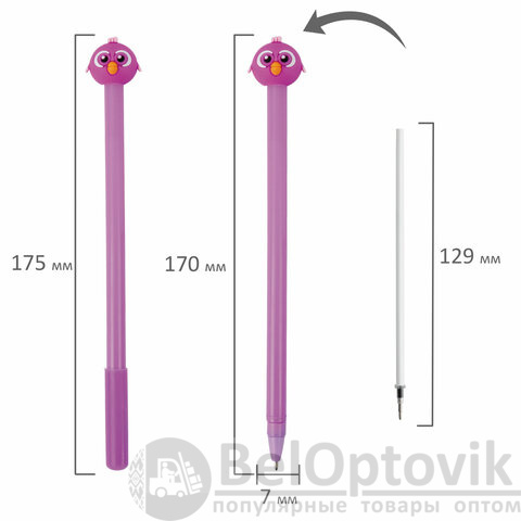 Шариковая ручка серии FUNNY YUMMY с ярким корпусом и оригинальным дизайном топперов в виде птенца. Благодаря привлекательному дизайну ее не захочется выпускать из рук, а чернила на масляной основе обеспечат мягкое плавное письмо. Диаметр игольчатого пишущего узла, равный 0,7 мм, создает линию письма, равную 0,35 мм. Длина сменного стержня составляет 129 мм. Цвет чернил - синий.