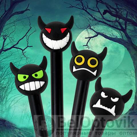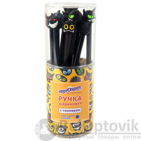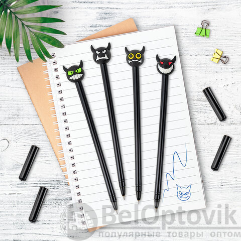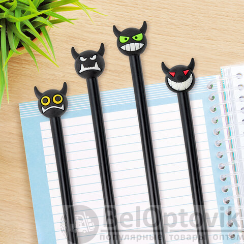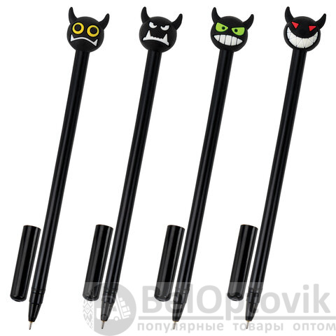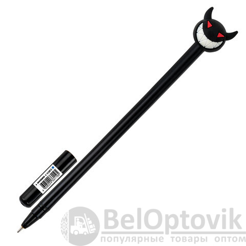 Шариковая ручка масляная ЮНЛАНДИЯ "Чертёнок" с милой игрушкой на корпусе.