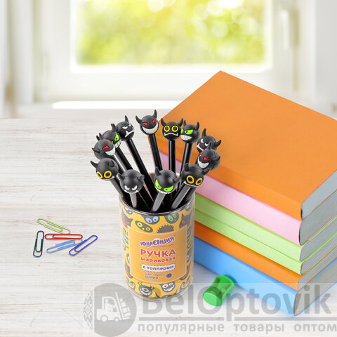 Ручка с топпером шариковая ЮНЛАНДИЯ "Чертёнок", корпус ассорти, СИНЯЯ, пишущий узел 0,7 мм, 143812