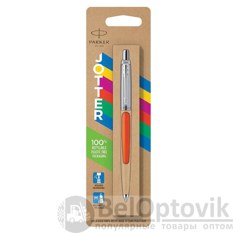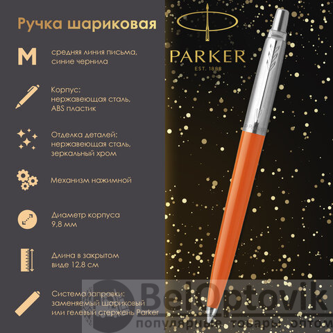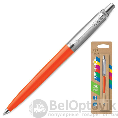 Ручка шариковая PARKER "Jotter Orig Orange", корпус оранжевый, детали хром, блистер, синяя, 2076054