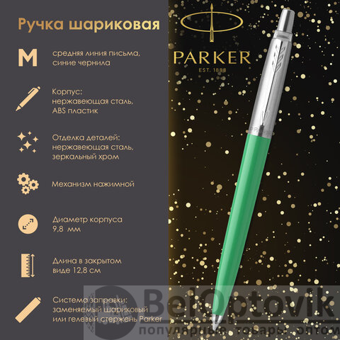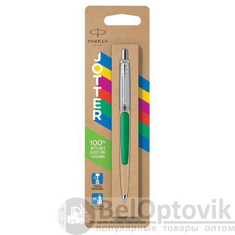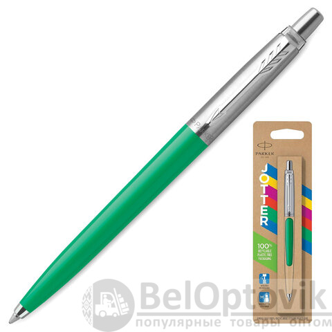 Ручка шариковая PARKER "Jotter Orig Green", корпус зеленый, нержавеющая сталь, блистер, синяя, 2076058