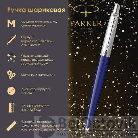 Ручка шариковая PARKER "Jotter Orig Blue", корпус синий, детали нержавеющая сталь, синяя, RG0033170