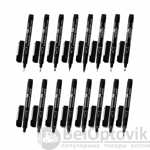 В наборе 16 черных капиллярных ручек со следующими типами наконечников: