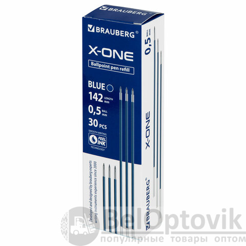 Стержень шариковый BRAUBERG "X-ONE" 142 мм, СИНИЙ, узел 0,5 мм, линия письма 0,35 мм, 143991