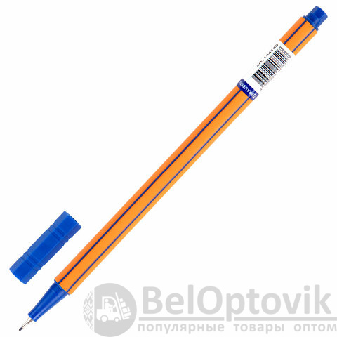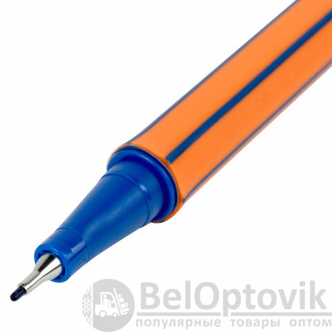 Ручка капиллярная имеет шестигранную форму корпуса оранжевого цвета. Благодаря такой форме корпуса изделие удобно располагается в руке. Супертонкий износостойкий металлический наконечник 0,4 мм идеально подходит для создания точных и аккуратных линий. Цвет колпачка соответствует цвету синих чернил.
