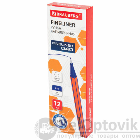 Ручка капиллярная (линер) СИНЯЯ, BRAUBERG "FINE 040", шестигранная, линия письма 0,4 мм, 144140