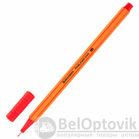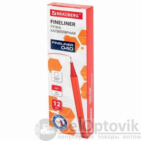 Ручка капиллярная (линер) КРАСНАЯ, BRAUBERG "FINE 040", шестигранная, линия письма 0,4 мм, 144142