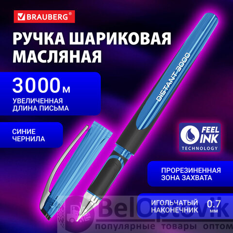 Шариковая масляная ручка BRAUBERG "DISTANT 3000" обеспечивает комфортное и долгое письмо. Приобретайте ручки BRAUBERG и оцените удобство их использования!