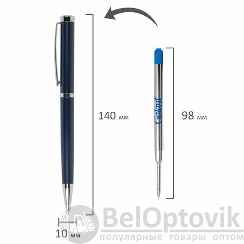 Корпус имеет глянцевое покрытие и увеличивается к торцевой части. Клип позволяет фиксировать ручку на ежедневниках, блокнотах и карманах одежды. GALANT "Ricardo" оснащена поворотным механизмом, внутри которого расположен стержень. Диаметр наконечника составляет 0,7 мм, то есть ручка идеально подходит для быстрого стиля письма. Упакована в подарочный футляр.