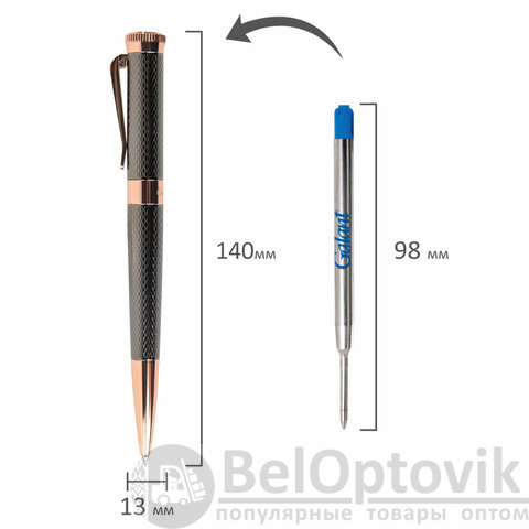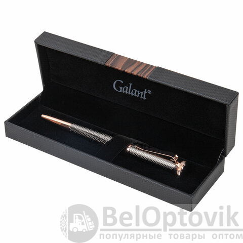 Корпус покрыт гравировкой в виде сеточки и увеличивается к торцевой части. Клип позволяет фиксировать ручку на ежедневниках, блокнотах и карманах одежды. GALANT "Taut" оснащена поворотным механизмом, внутри которого расположен стержень. Диаметр наконечника составляет 0,7 мм, то есть ручка идеально подходит для быстрого стиля письма. Упакована в подарочный футляр.