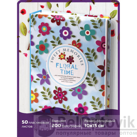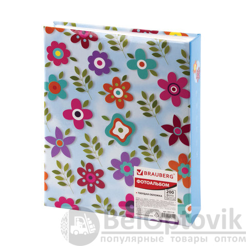 Фотоальбом BRAUBERG на 200 фото 10х15 см, твердая обложка, "Цветочки", разноцветный, 391119