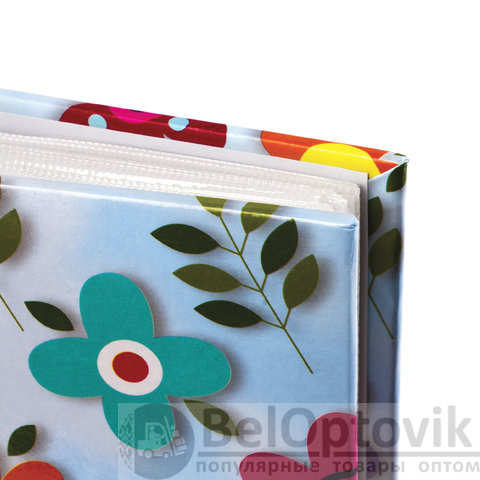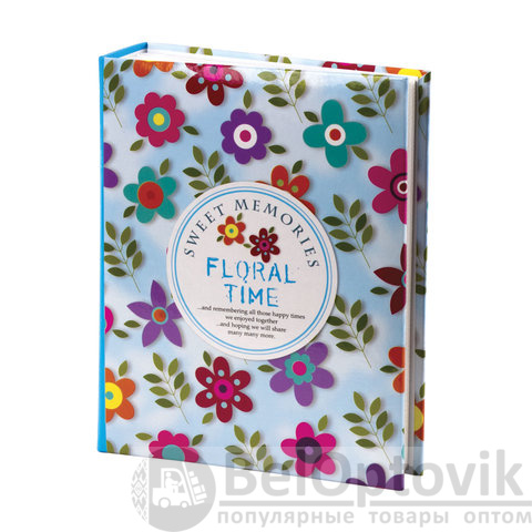 Состоит из 50 полипропиленовых листов размером 17,5х22 см с карманами и вмещает 200 фотографий размером 10х15 см по 2 штуки на странице. На обложке фотоальбома изображен цветочный принт, а его листы склеены в единый блок. Размер – 18х23 см. Упакован в термоусадку и дополнительно в воздушно-пузырчатый пакет, который защитит фотоальбом от любых повреждений во время транспортировки.