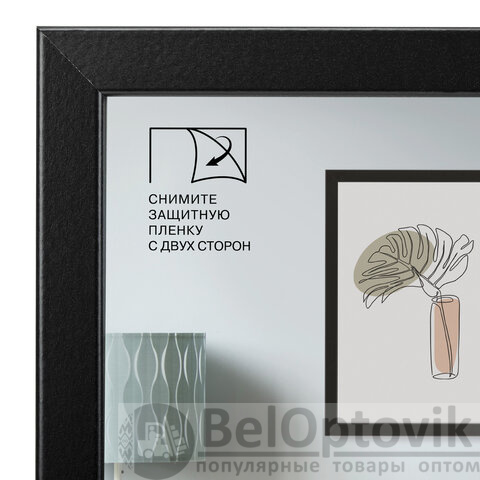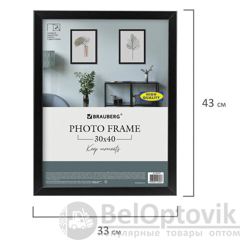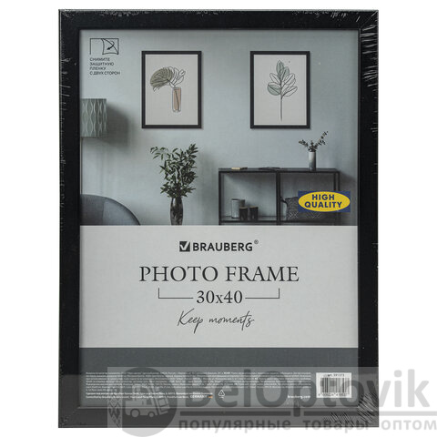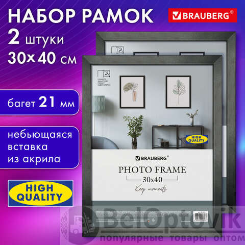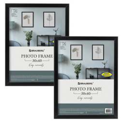 Рамка 30х40 см небьющаяся, КОМПЛЕКТ 2 штуки, багет 21 мм, МДФ, BRAUBERG "Idea", черная, 391395
