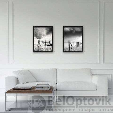 Рамки крупного формата А3 (30х40 см) выполнены из МДФ универсального черного цвета, за счет чего отлично впишутся как в домашний, так и в деловой интерьер. У каждой рамки имеется возможность вертикального и горизонтального подвеса.