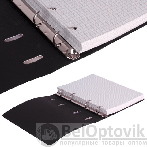 Сменный блок подходит для всех тетрадей на 4 кольцах формата А5. Внутренний блок содержит 120 листов белой, офсетной бумаги плотностью 60 г/м2. Линовка – в клетку без полей. Упакован в термопленку.