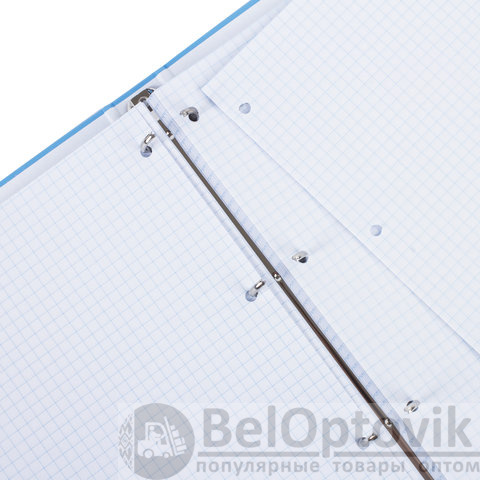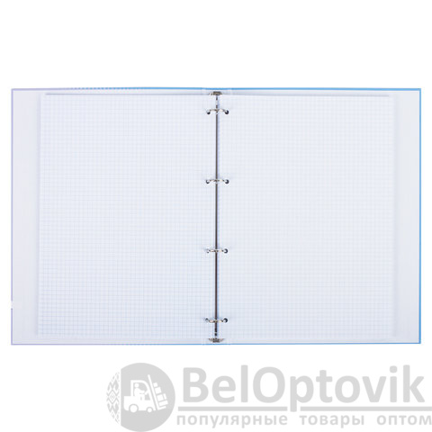 Блок состоит из 100 листов офсетной бумаги белого цвета плотностью 60 г/м2. Линовка – клетка. Жесткая книжная обложка выполнена из переплетного картона и покрыта глянцевой пленкой. Увеличенный формат А4 предназначен для ведения большего объема записей. Оборудована кольцевым механизмом с 4 кольцами для подшивки сменных блоков, что позволит носить на учебу или работу всего одну тетрадь с возможностью добавлять и менять листы. Диаметр колец составляет 25 мм.