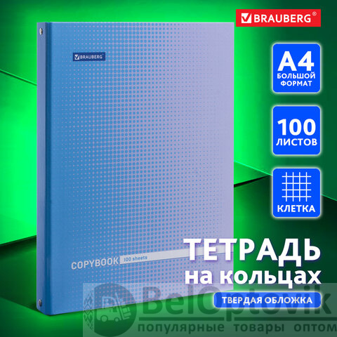 Тетрадь на кольцах БОЛЬШАЯ А4 (225х300 мм), 100 листов, твердый картон, клетка, BRAUBERG, Градиент, 403272